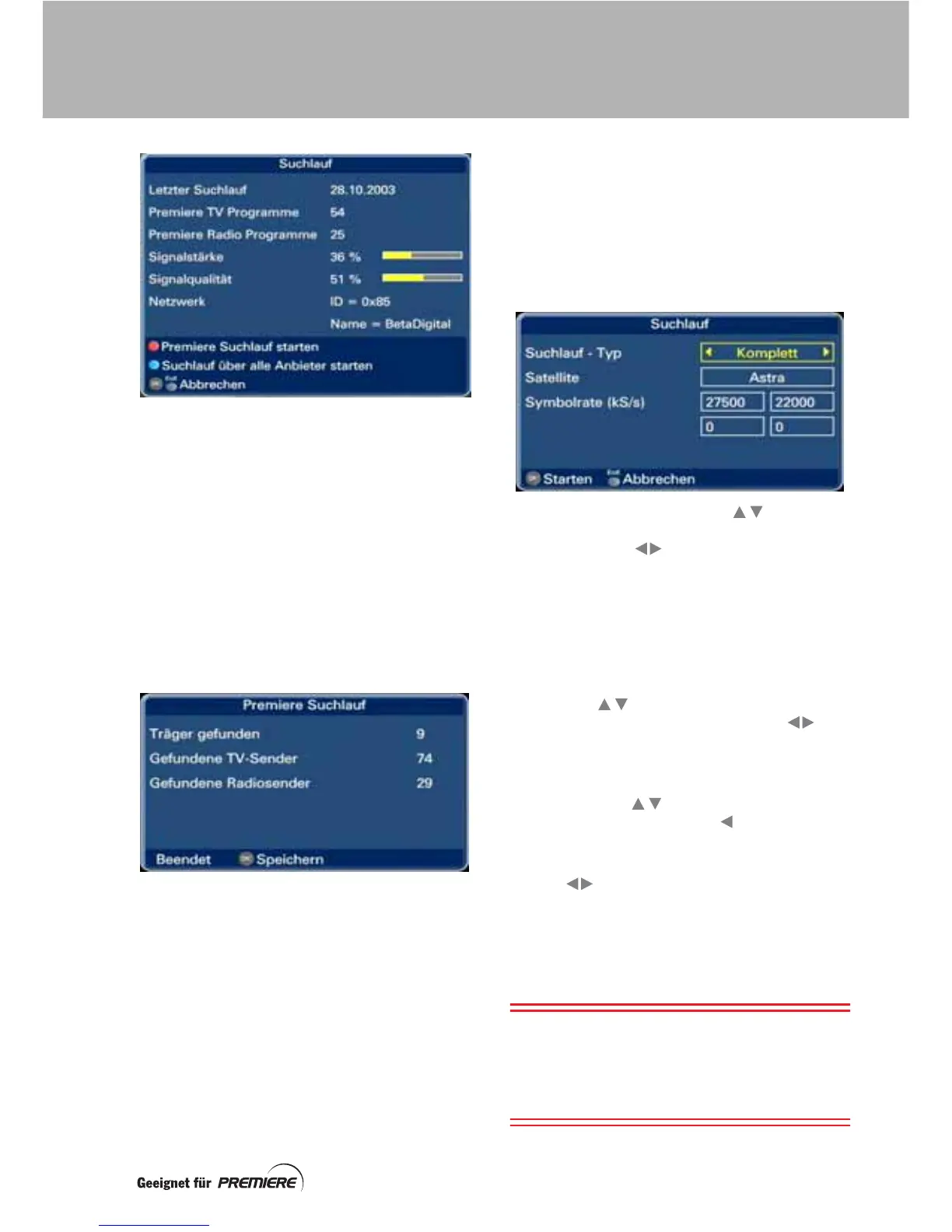 Zum Starten eines Premiere Suchlaufs