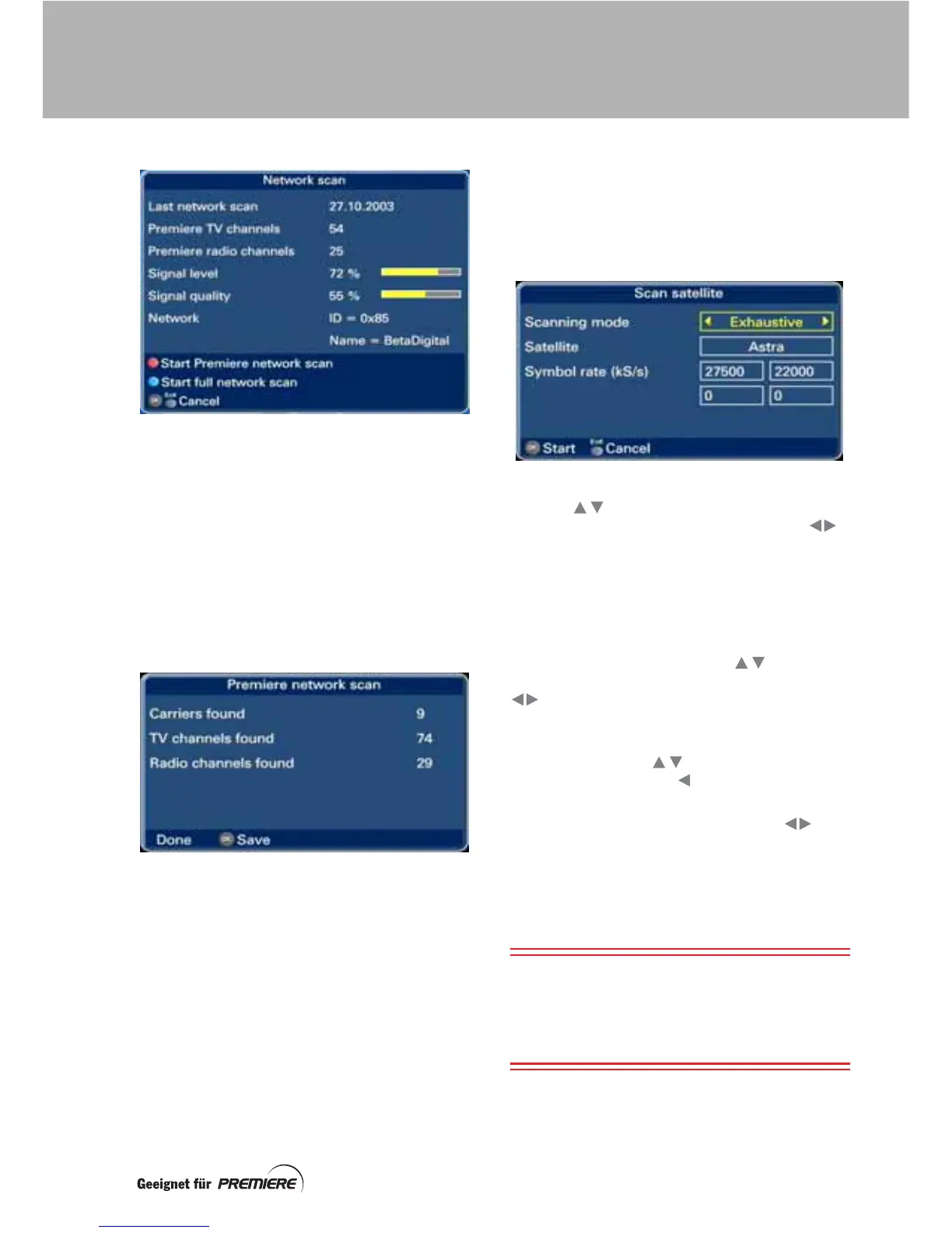 To start a Premiere network scan, press the