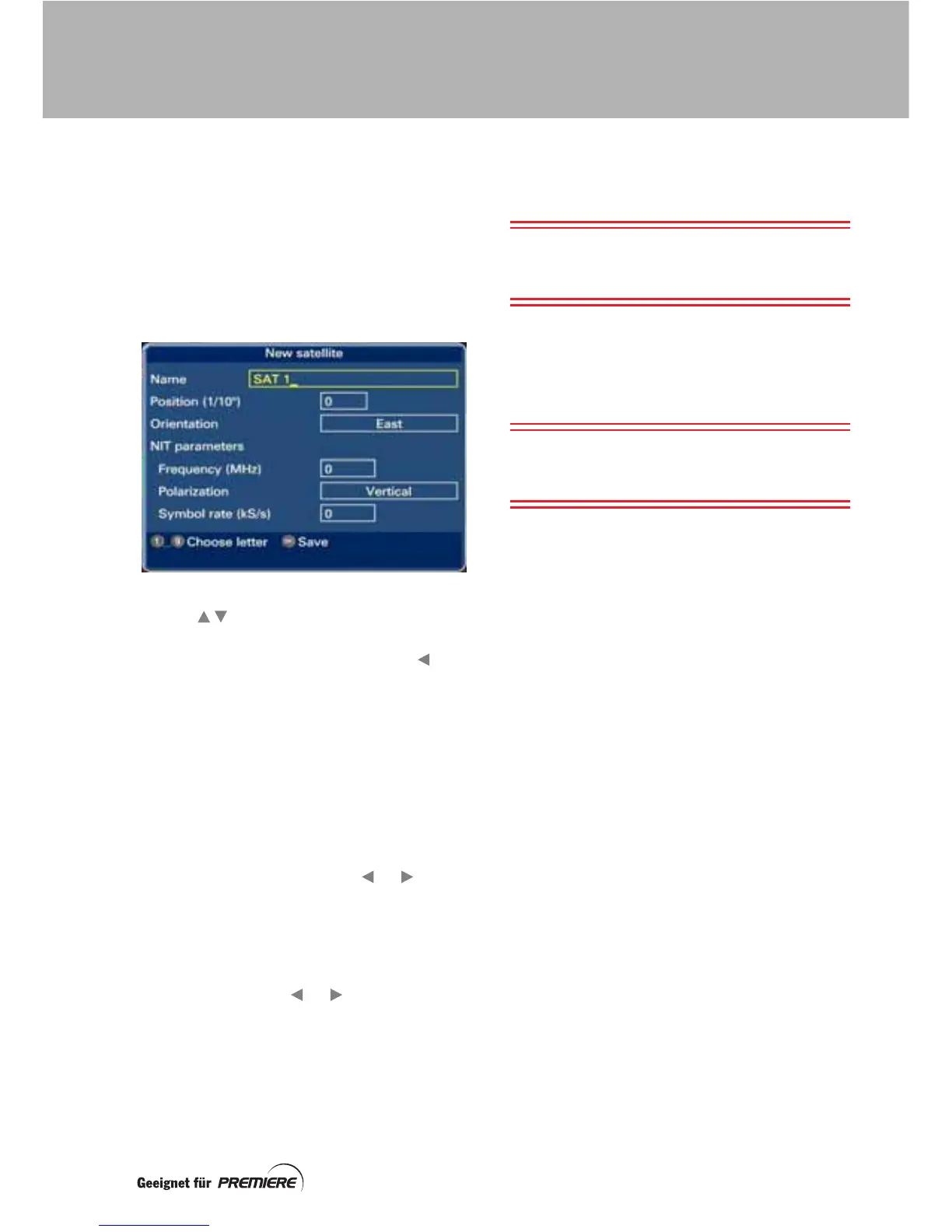 the New satellite screen correctly, press OK