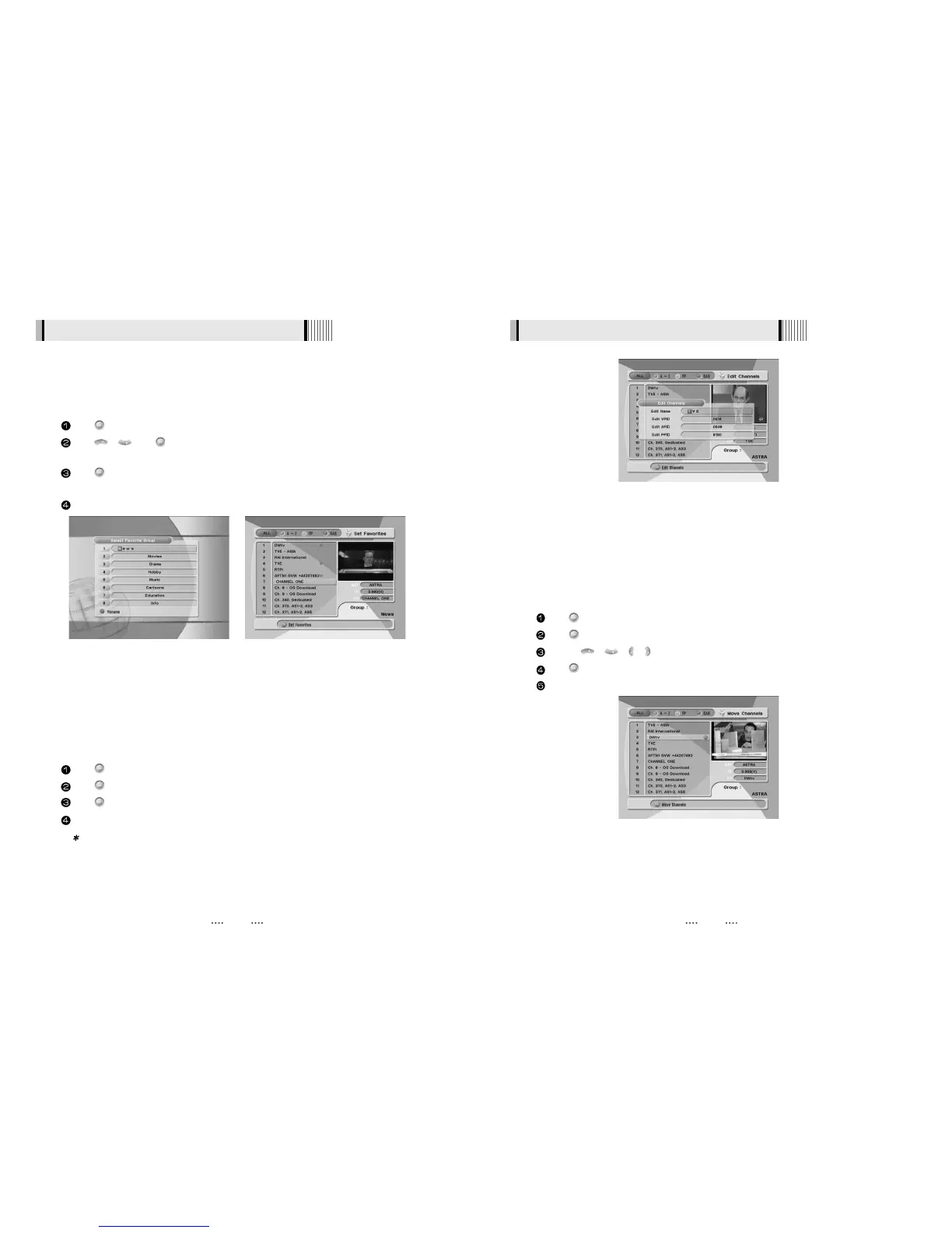 channels in an alternative way by pressing the TV/RADIO button. The receiver supports 8 favorite