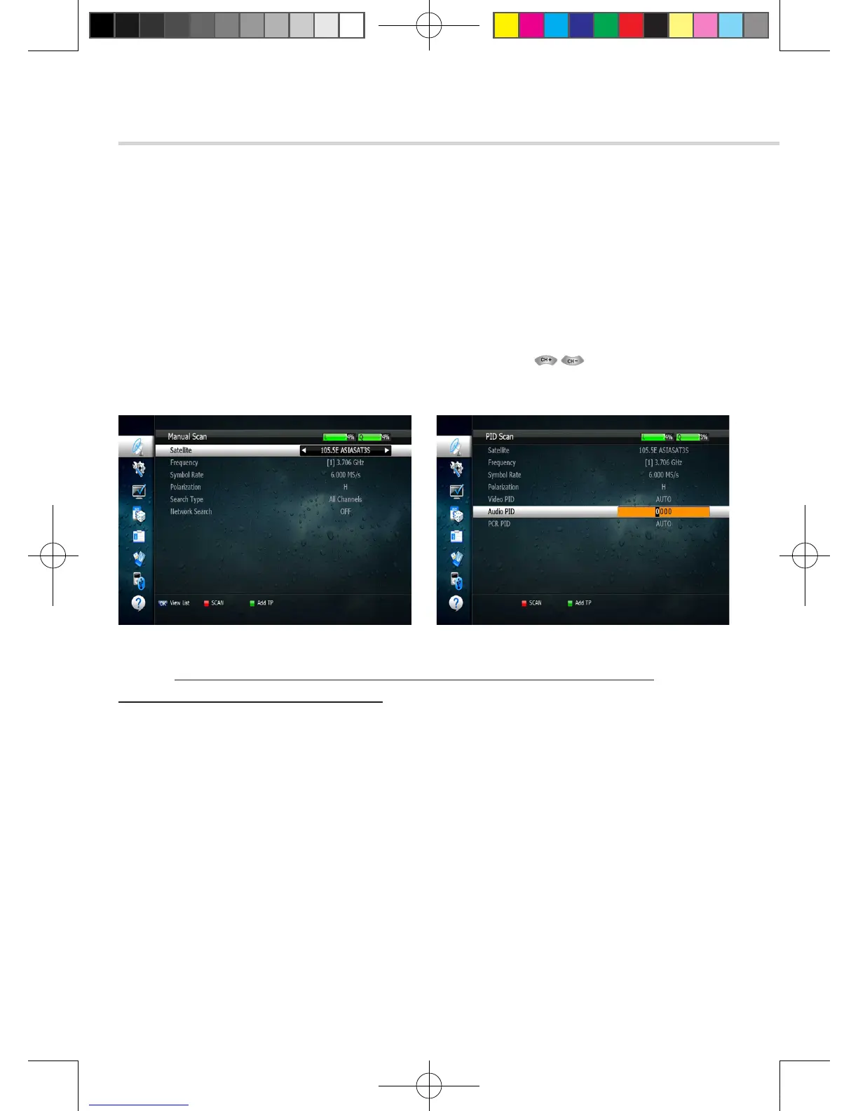 You can search a specific channel of the transponder by setting its PID data (Video, Audio and PCR).