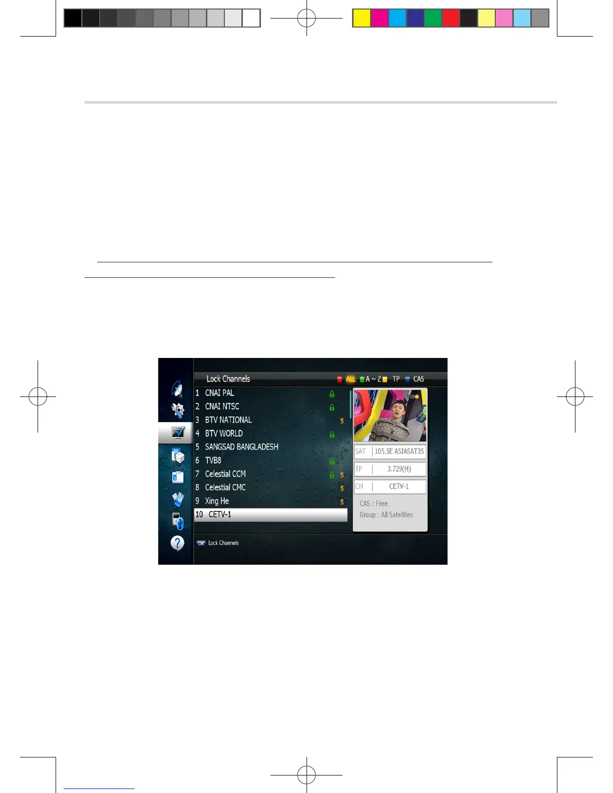2. Press OK on the channel that you want to lock/unlock; the lock icon will be displayed/removed.