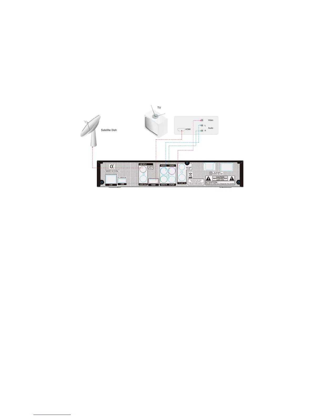 2. Connect the Video and Audio of the TV to Video and Audio: connect