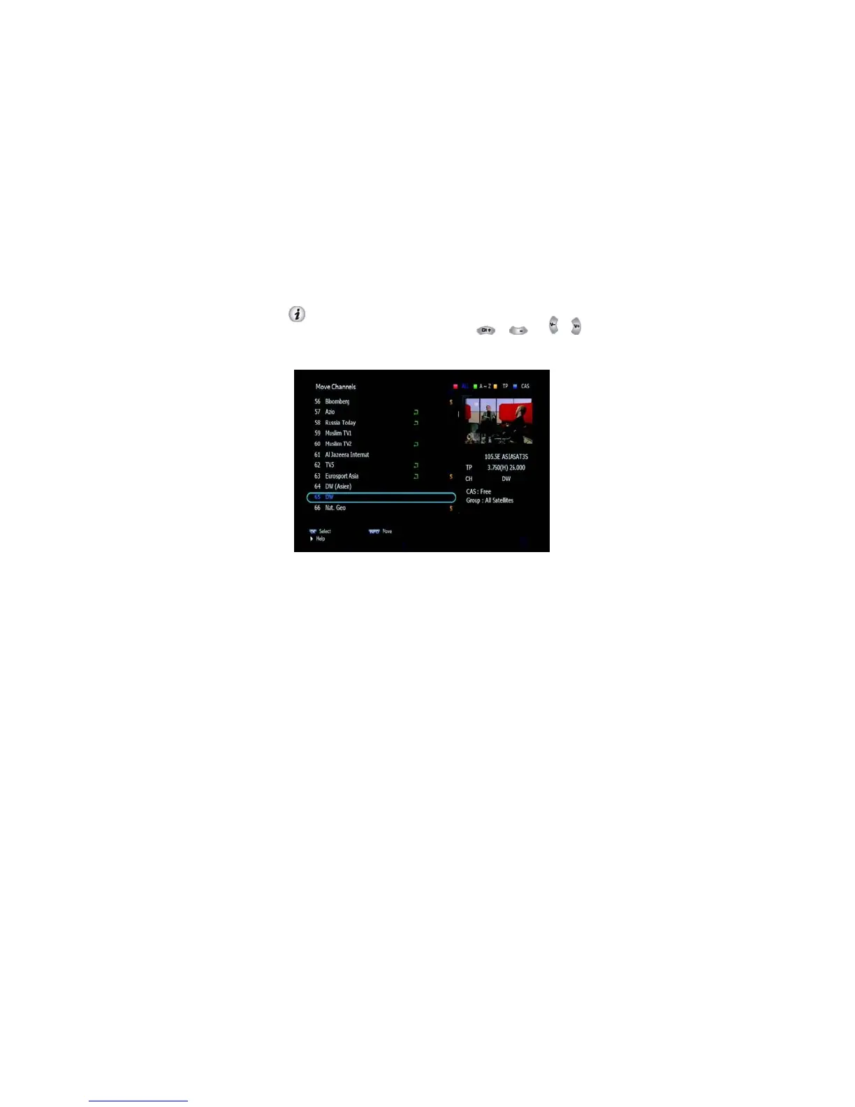 2. Press OK on the channel that you want to move; a ‘move’ icon