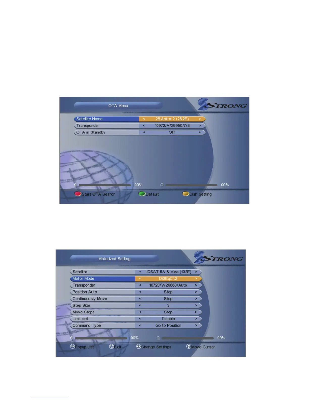 You can select motor mode input from DiSEqC 1.2 and USALS.