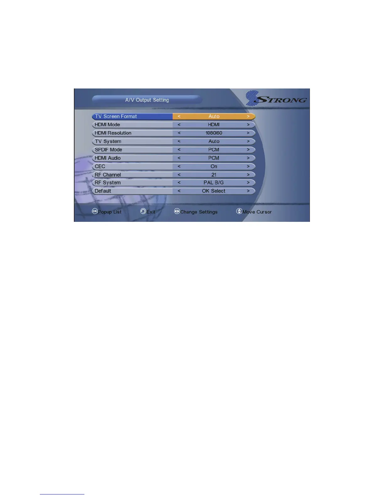Default: If you want to reset, please hightlight to default and press OK