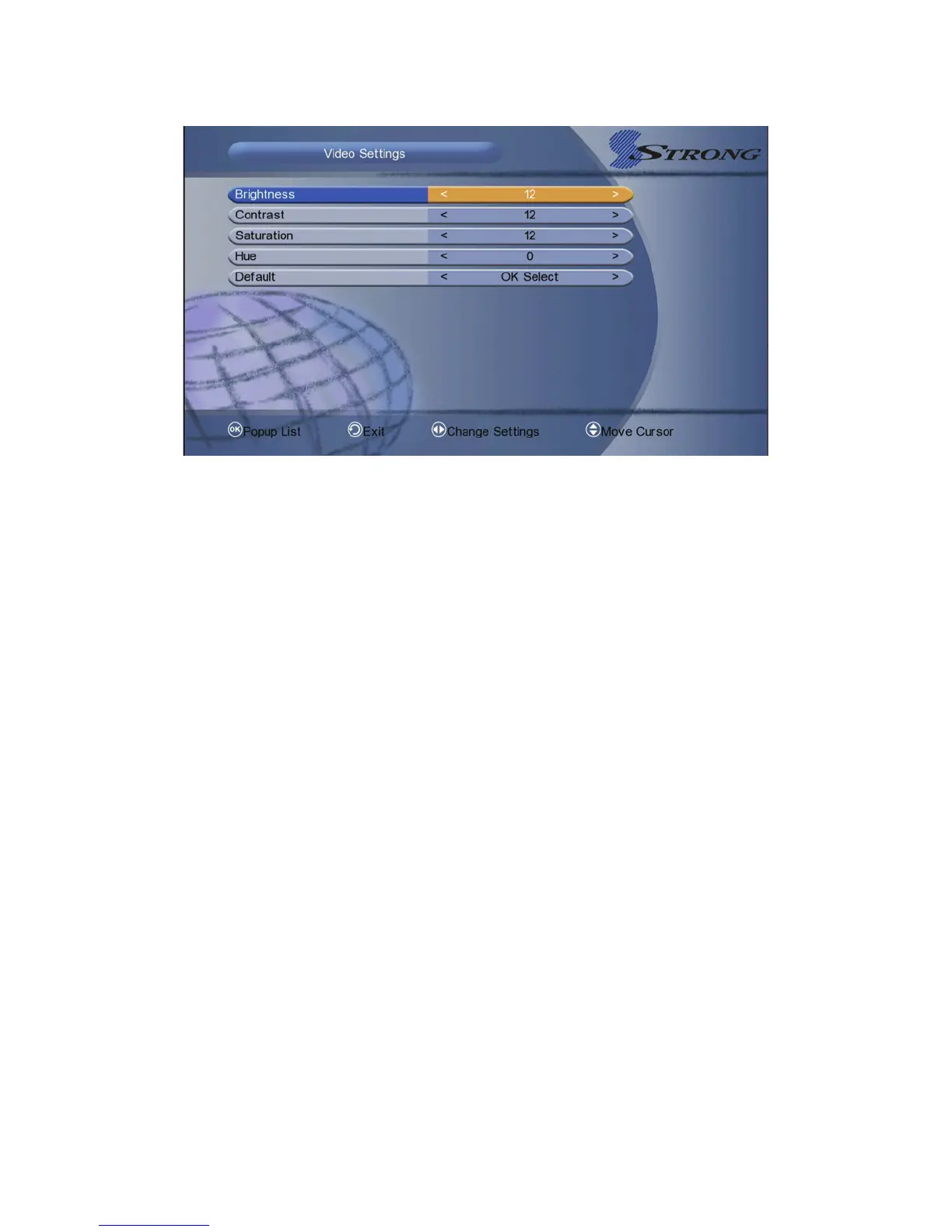 2. Contrast: Set the video contrast.