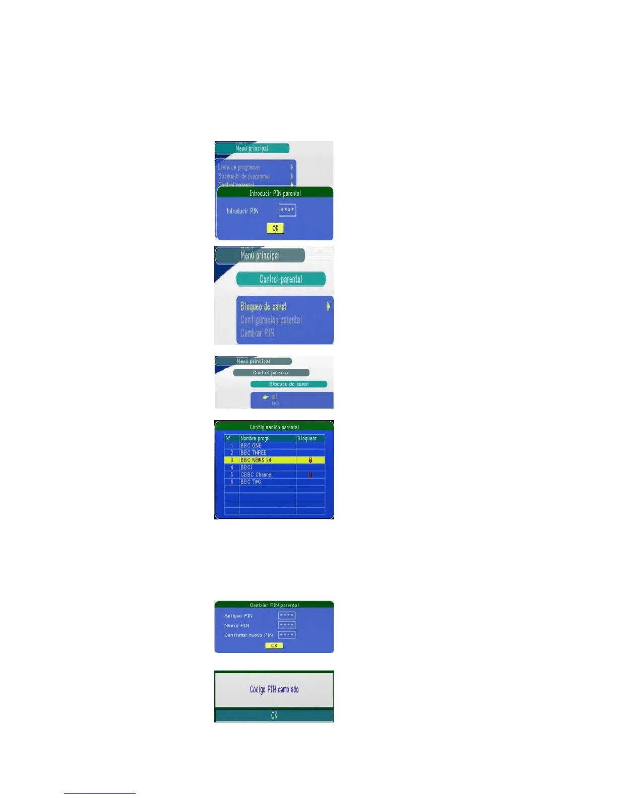 contraseña predeterminada es “0000“. Pulse “Aceptar“ en el submenú “Bloqueo de canal