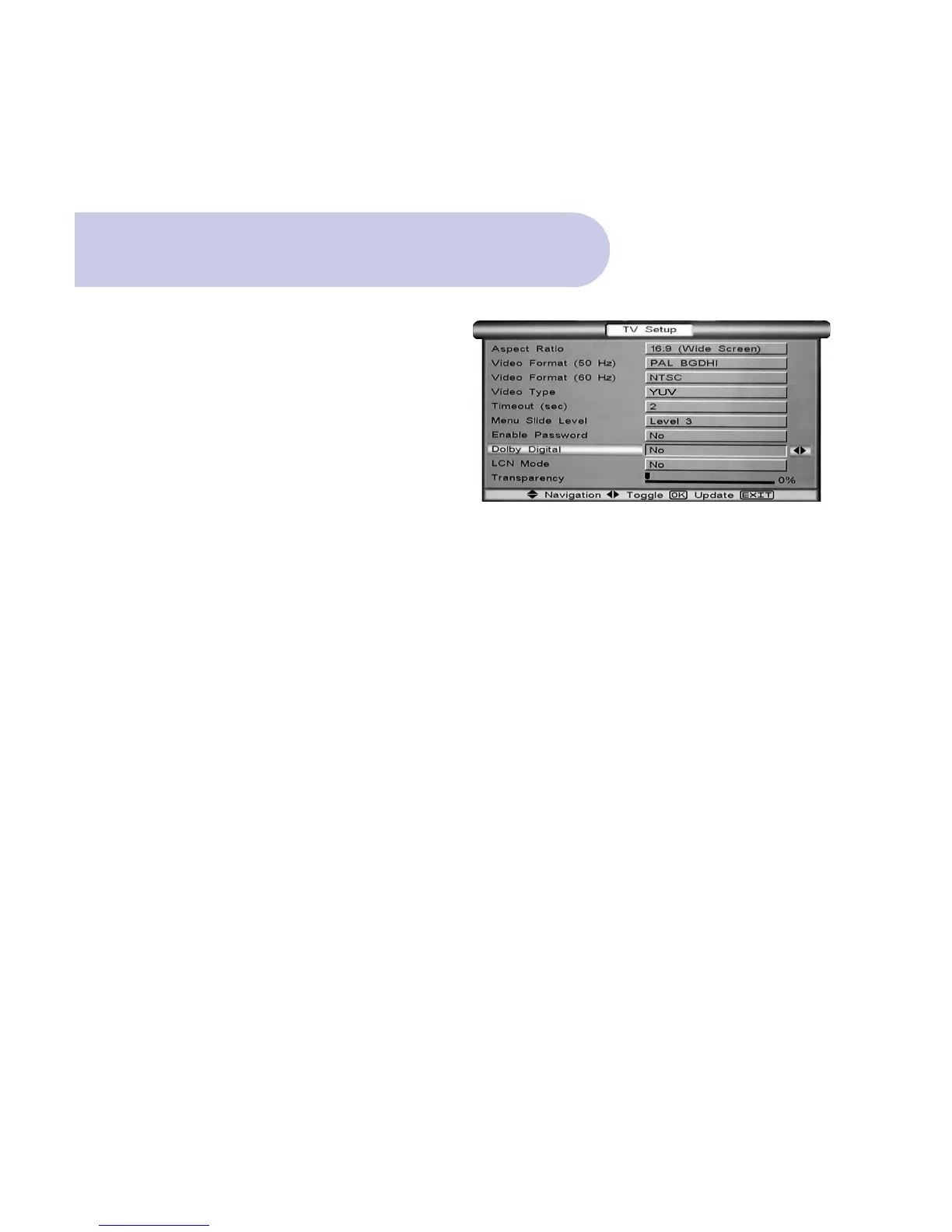 Dolby Digital In the TV Set Up Menu, followed by
