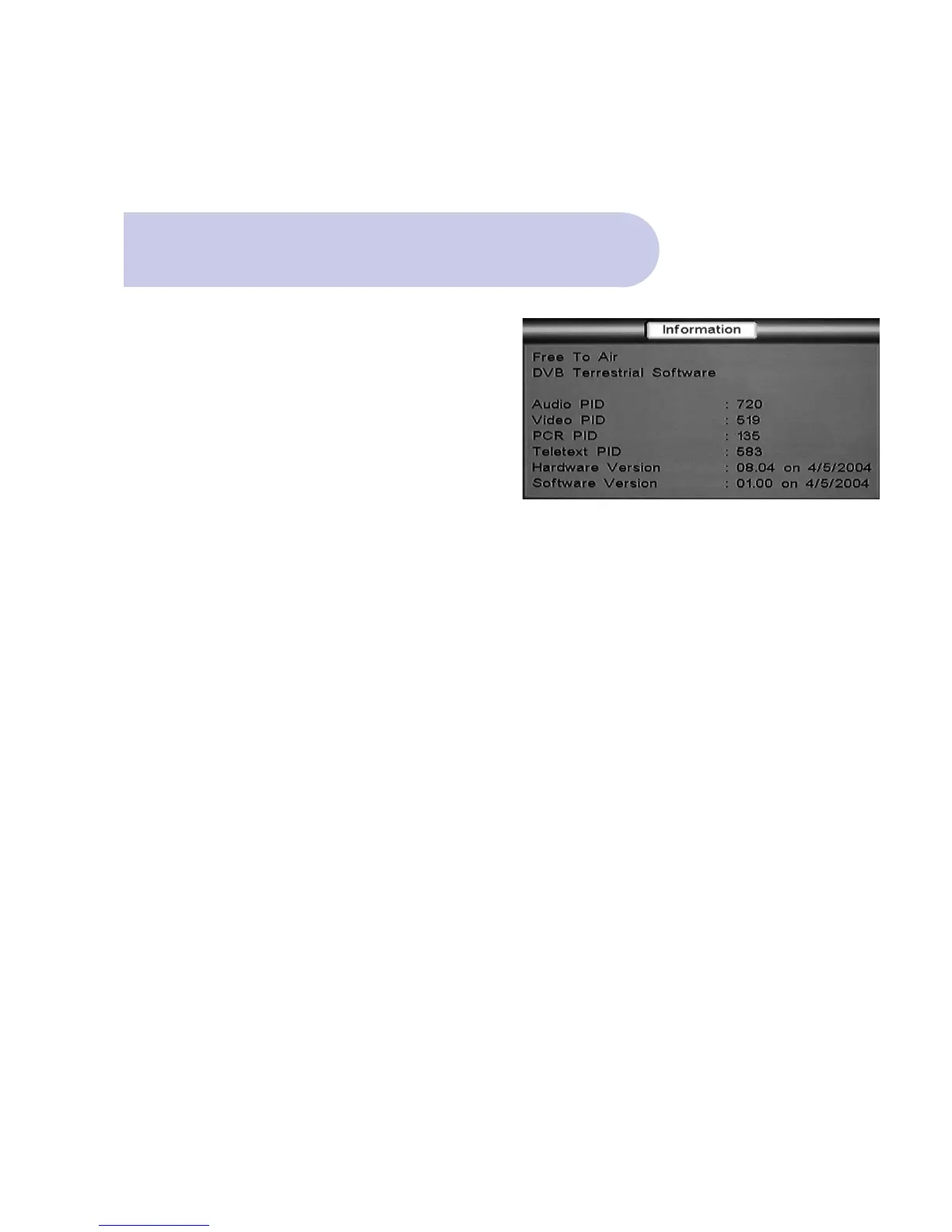 This menu details information on the receiver’s