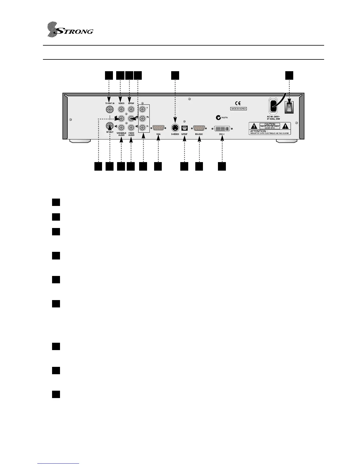 TV ANT IN : RF input for connecting the STB to a terrestrial antenna using a coaxial cable.
