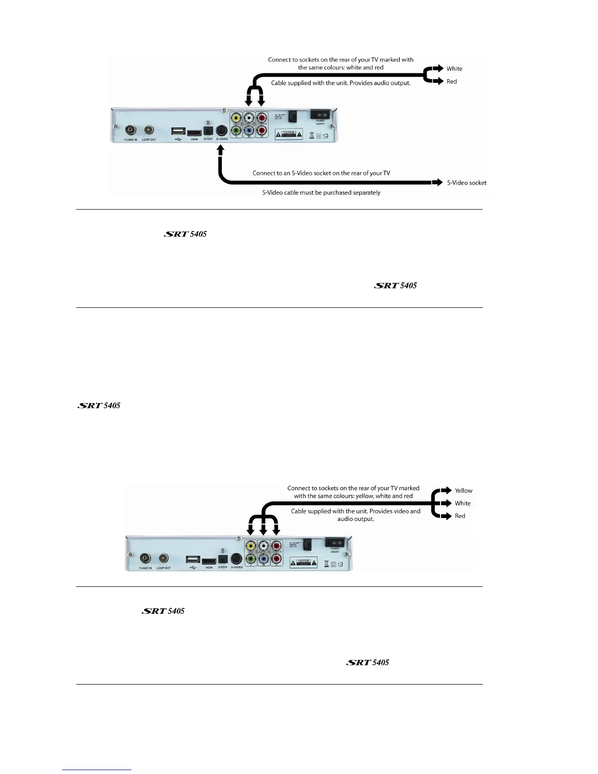 colour of the sockets. (All three leads of the cable—yellow, white and red—should be plugged into