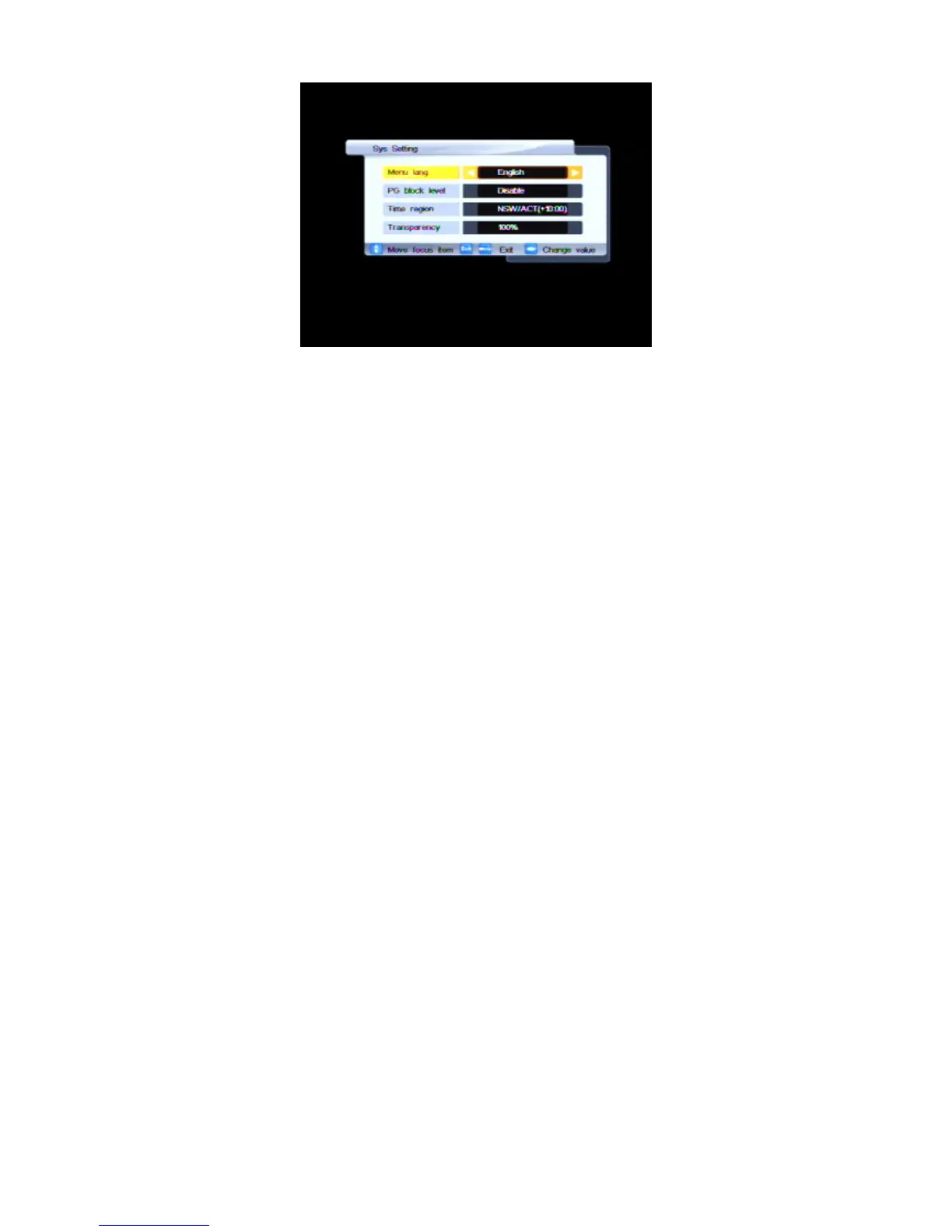 With this menu you can control the following settings: