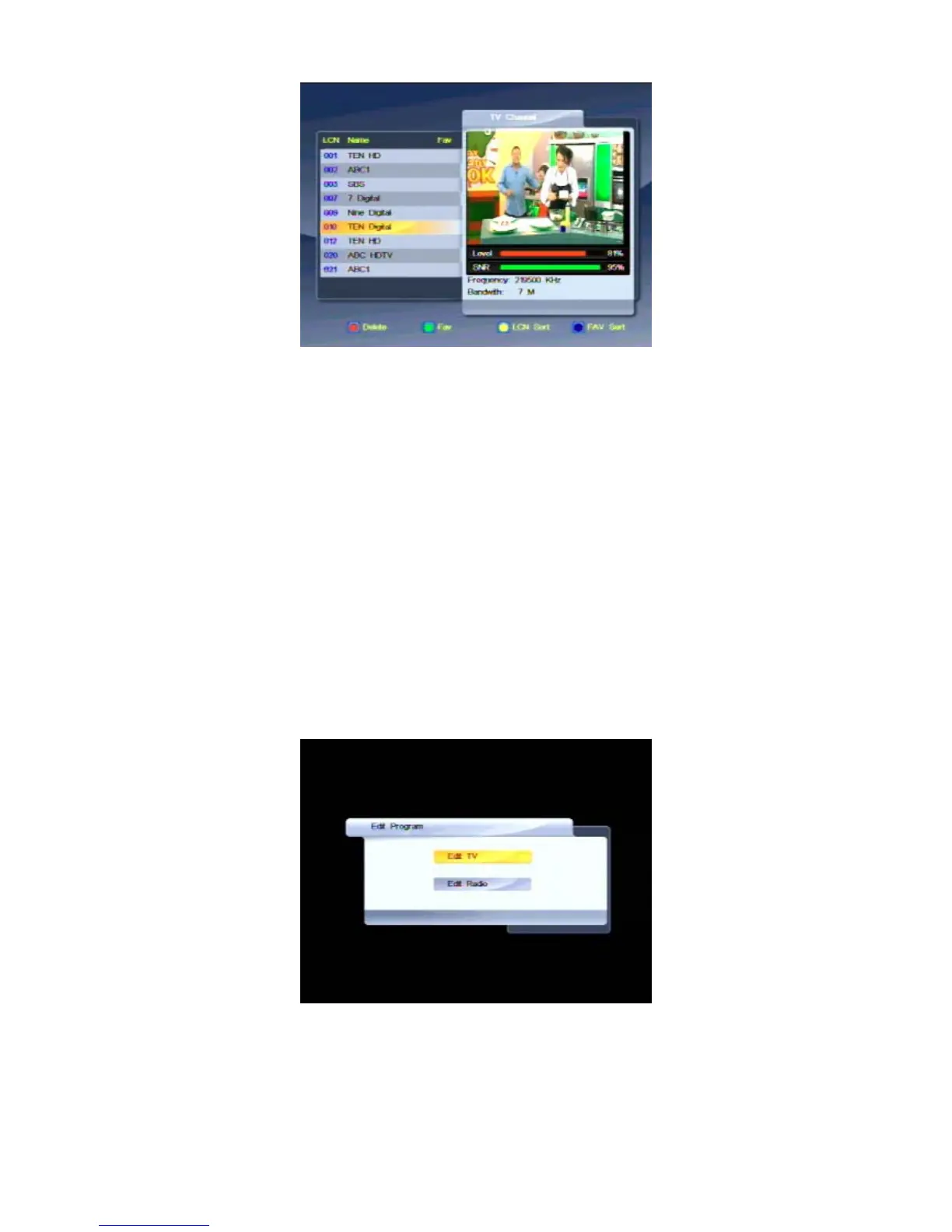 3. If you want to resort a channel, make sure Edit TV is highlighted; if you want to resort a station,
