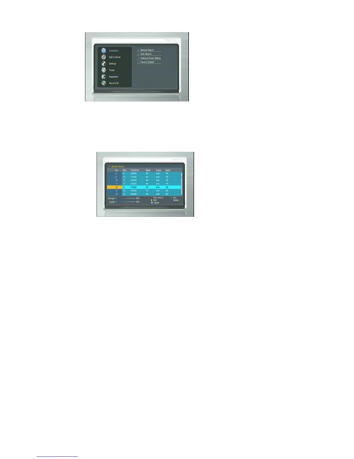 Press RED button to start manual scan and press <Exit> to cancel scan