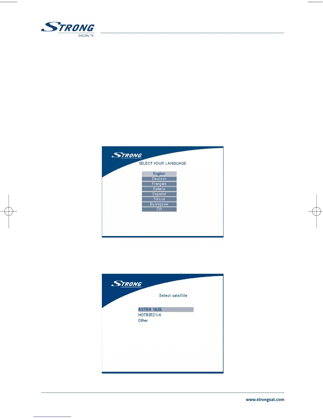 Press UP/DOWN to choose your language, press OK to confirm. The select satellite menu will appear