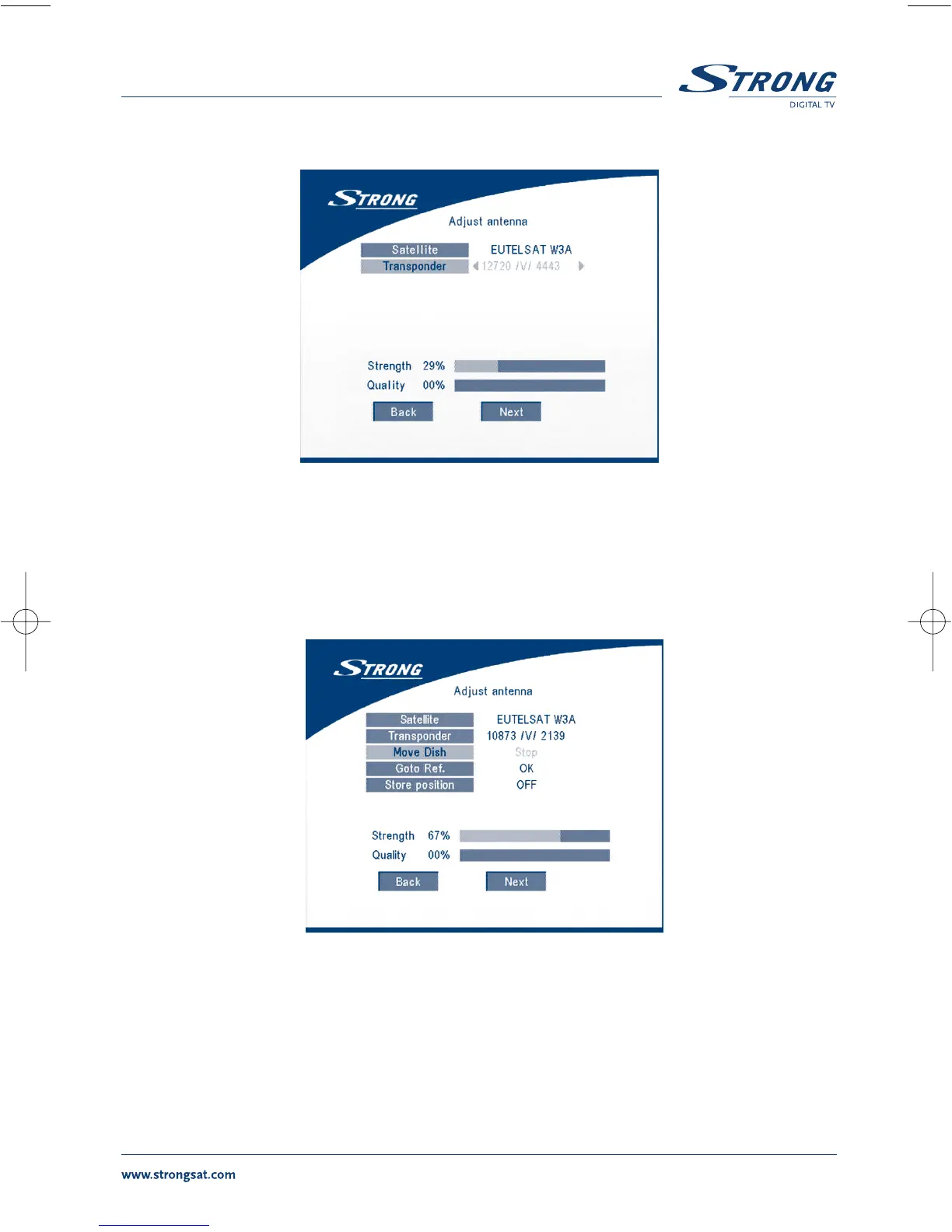 press the OK button. The menu Adjust antenna will appear as shown on screen 7.