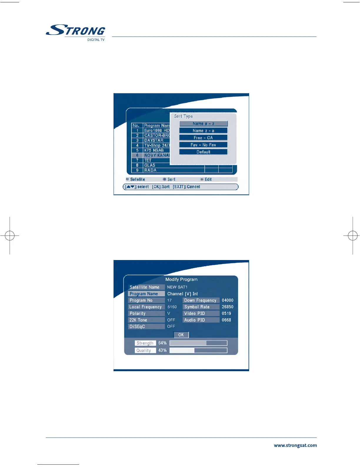 Select the channel that you wish to edit, press the YELLOW (Edit) button to move into the modify pro-