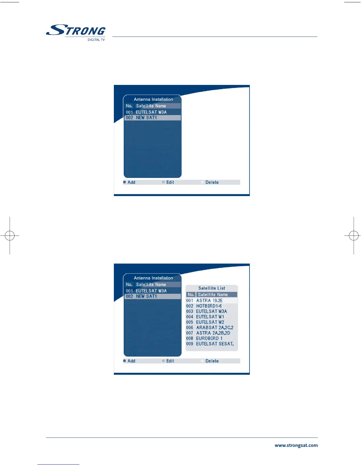 You can add a satellite, edit a satellite and delete a satellite in this menu.