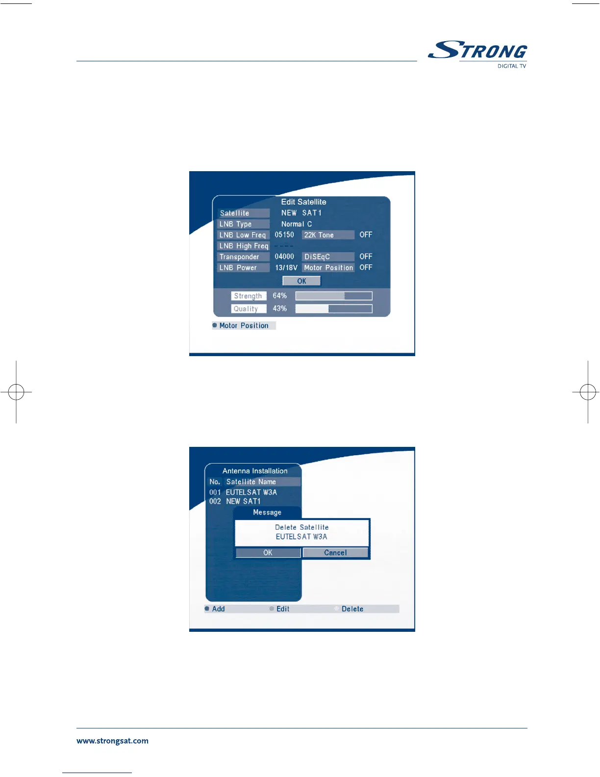 If the parameters of the satellite were changed or the satellite is a new satellite, you must set the