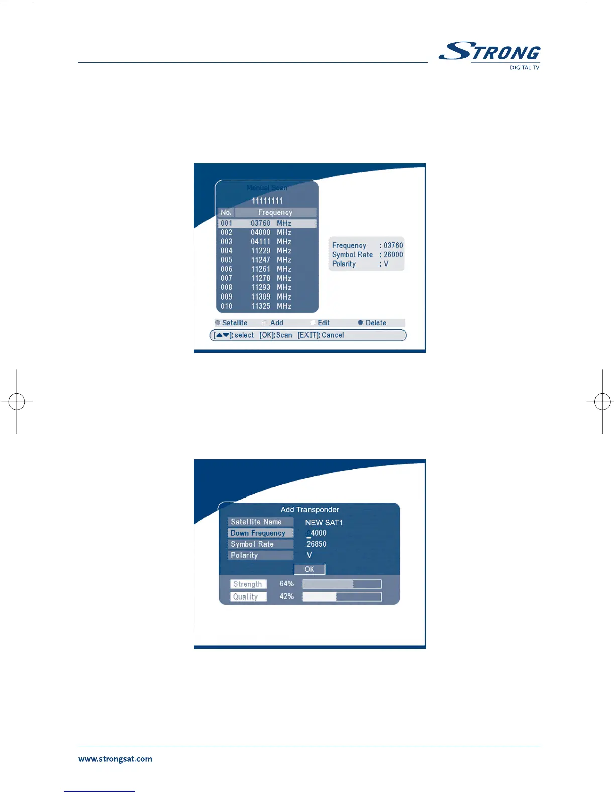 In this menu, you can add a new transponder, edit the transponder or delete the transponder. And you