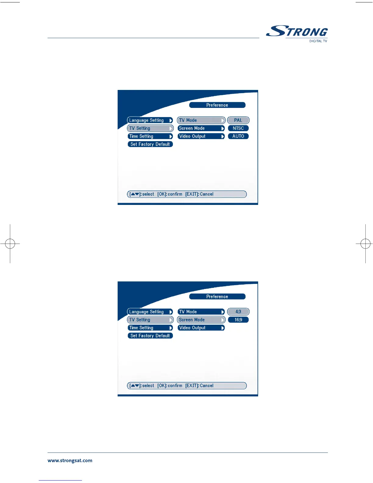Press OK/RIGHT to select 4:3 or 16:9, press OK to confirm