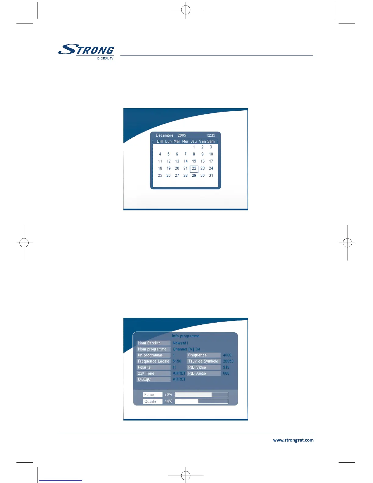Dans ce menu, l'utilisateur peut regarder l'information des programmes tel que le nom satellite, nom