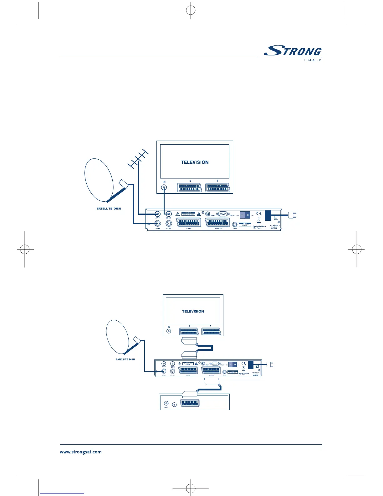 2. Collegare il un cavo SCART tra il connettore SCART TV del ricevitore e il connettore SCART IN
