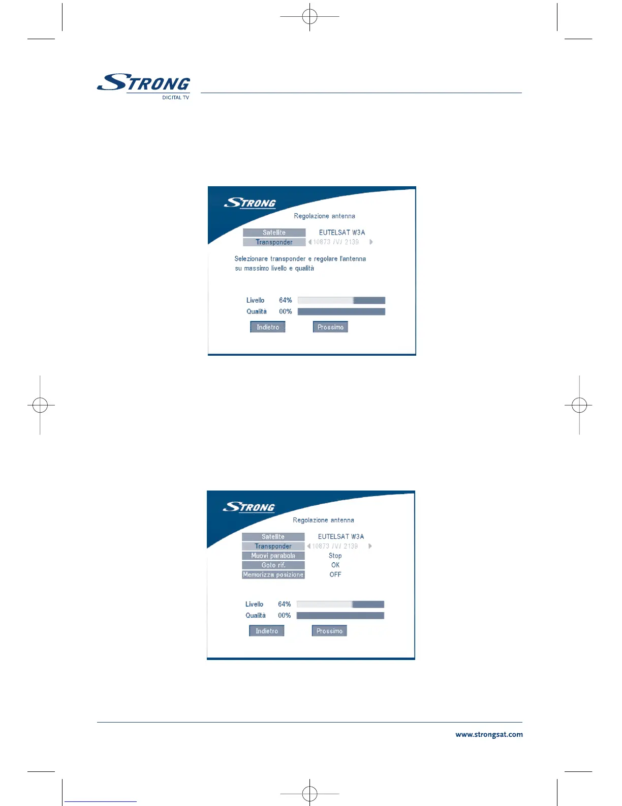 transponder ricevibile nella vostra zona e regolare il puntamento dell’antenna fino ad ottenere
