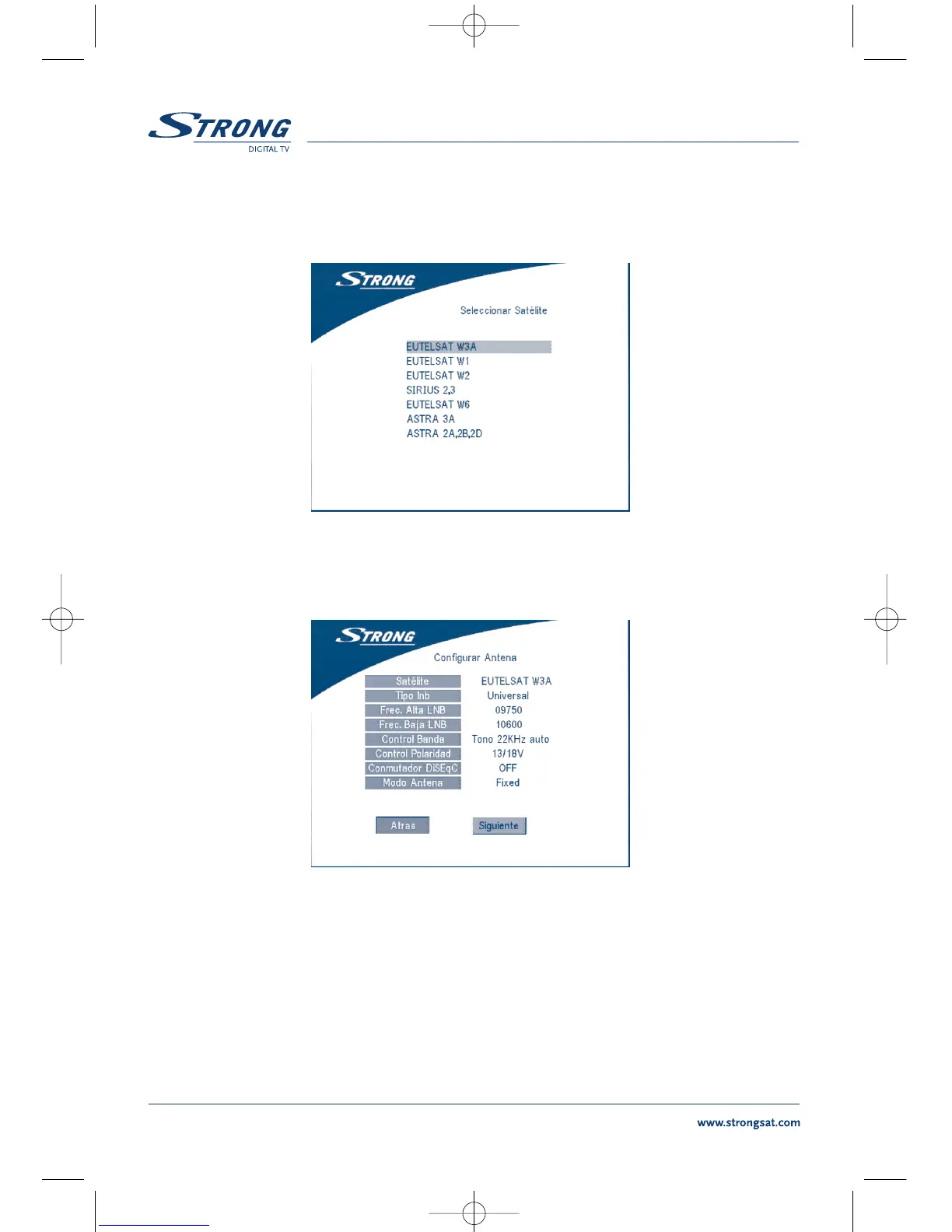 2. Si la parabólica esta orientada a otro satélite, seleccionar “otro” en el menú de selección de