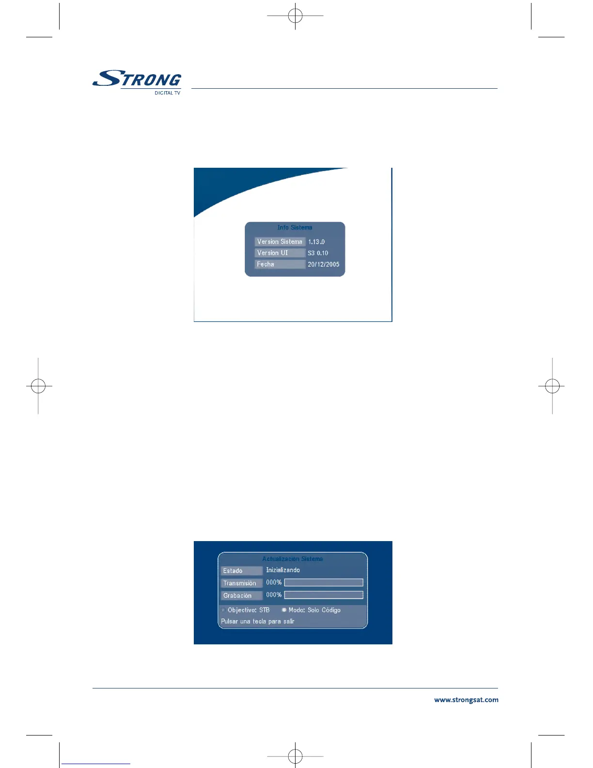 Entrar en el menú del STB master y seleccionar Configuración Sistema "Actualización del