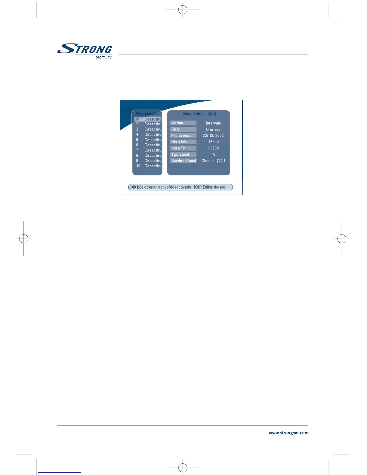 “Intervalo de Tiempo”: el receptor se enciende a la fecha u hora indicada, se visualiza el