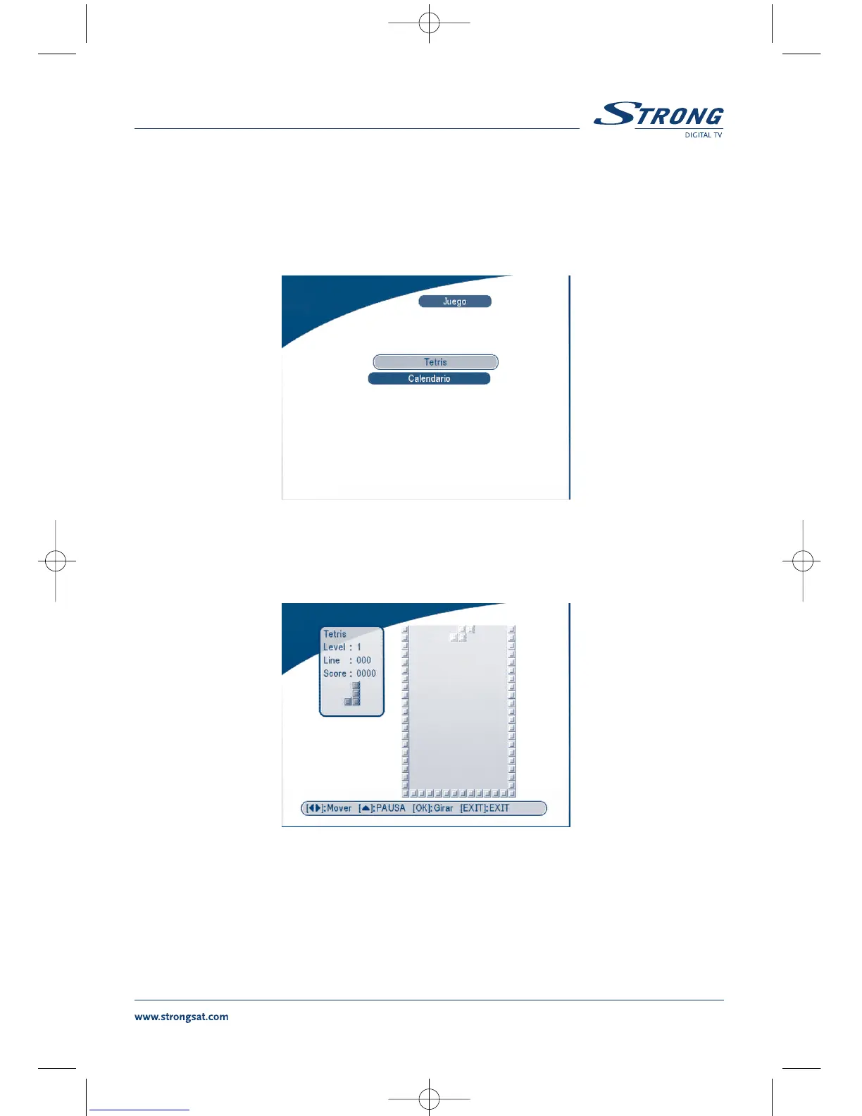 El receptor está dotado de un juego (Tetris) y un calendario.