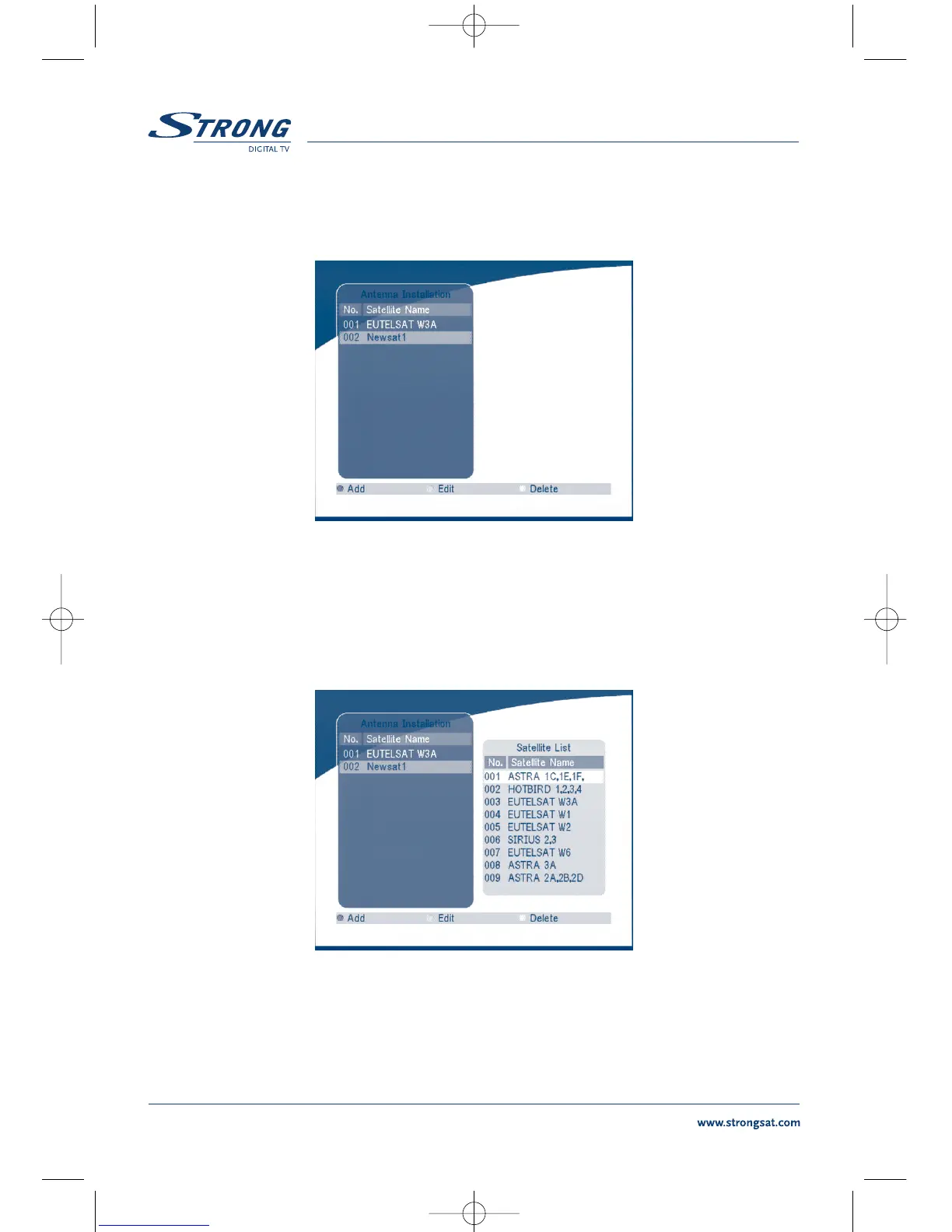 You can add a satellite, edit a satellite and delete a satellite in this menu.