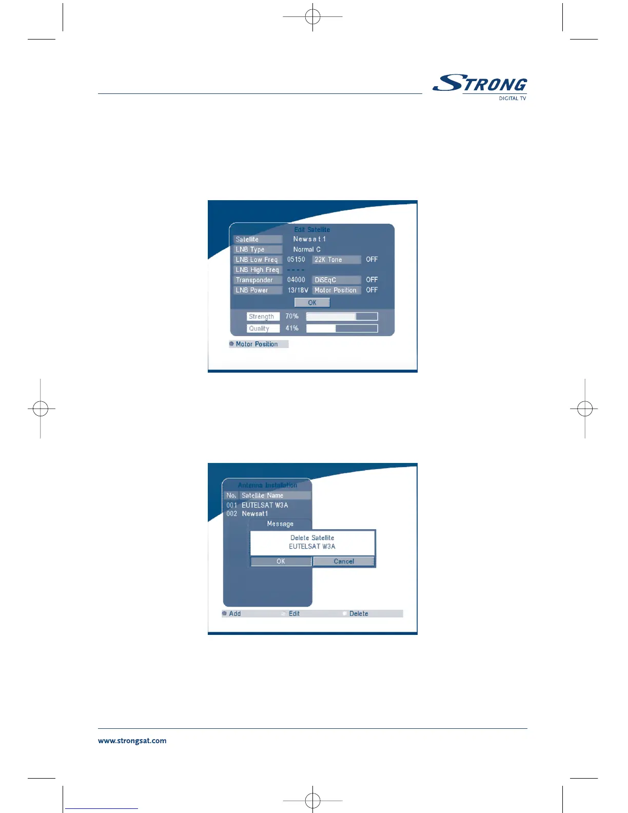 If the parameters of the satellite were changed or the satellite is a new satellite, you must set the