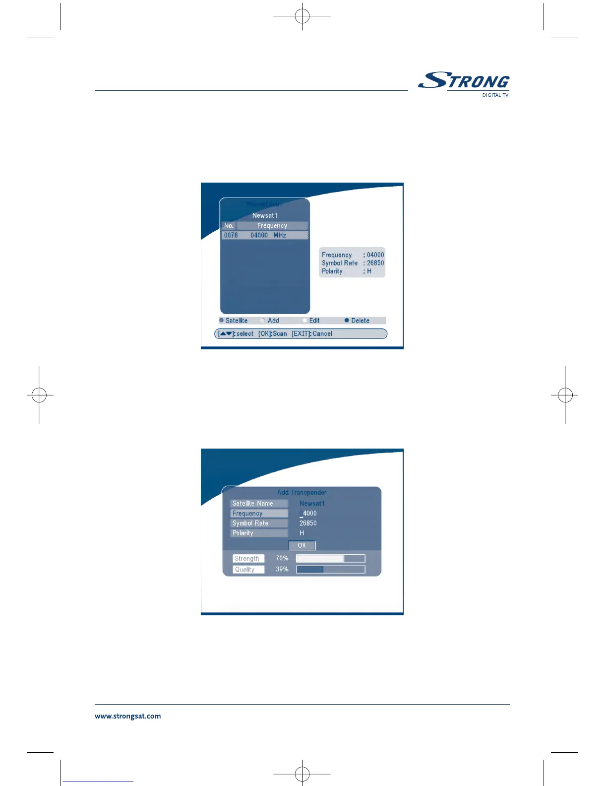 In this menu, you can add a new transponder, edit the transponder or delete the transponder. And you