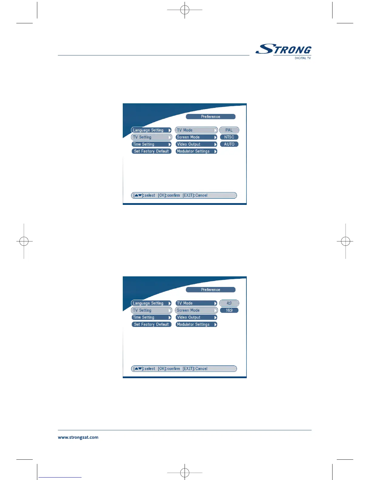 Press OK/RIGHT to select 4:3 or 16:9, press OK to confirm