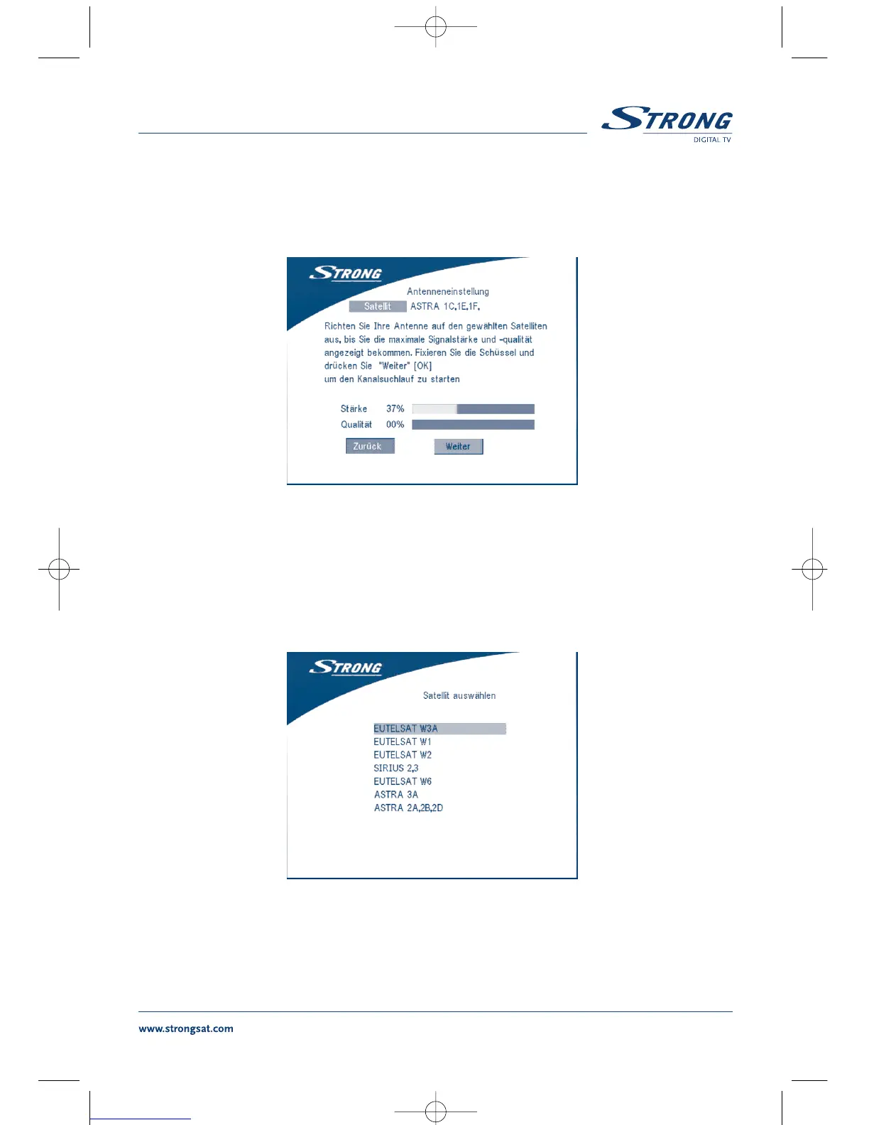 1. Wählen Sie den Satelliten aus, auf den Ihre Satellitenschüssel ausgerichtet ist In