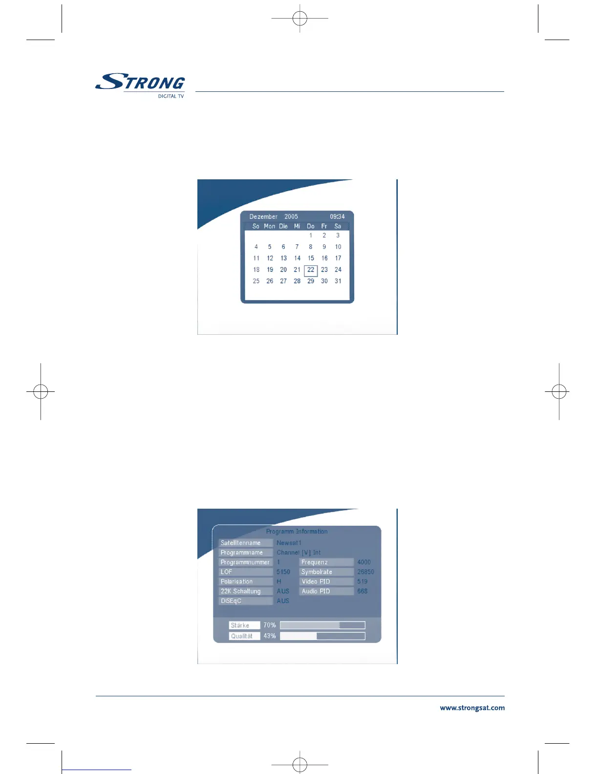 Signalstärke und die Signalqualität des aktuellen Programms angezeigt.