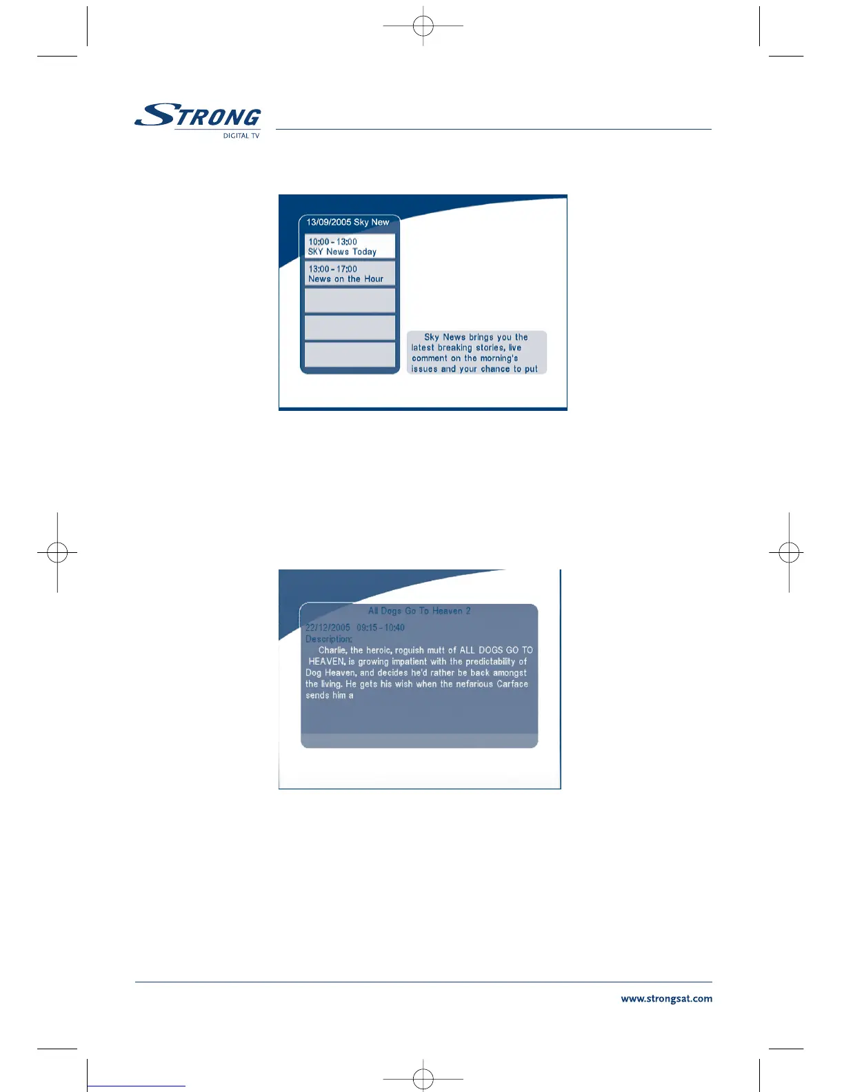 Aufgelistete Informationen im EPG: