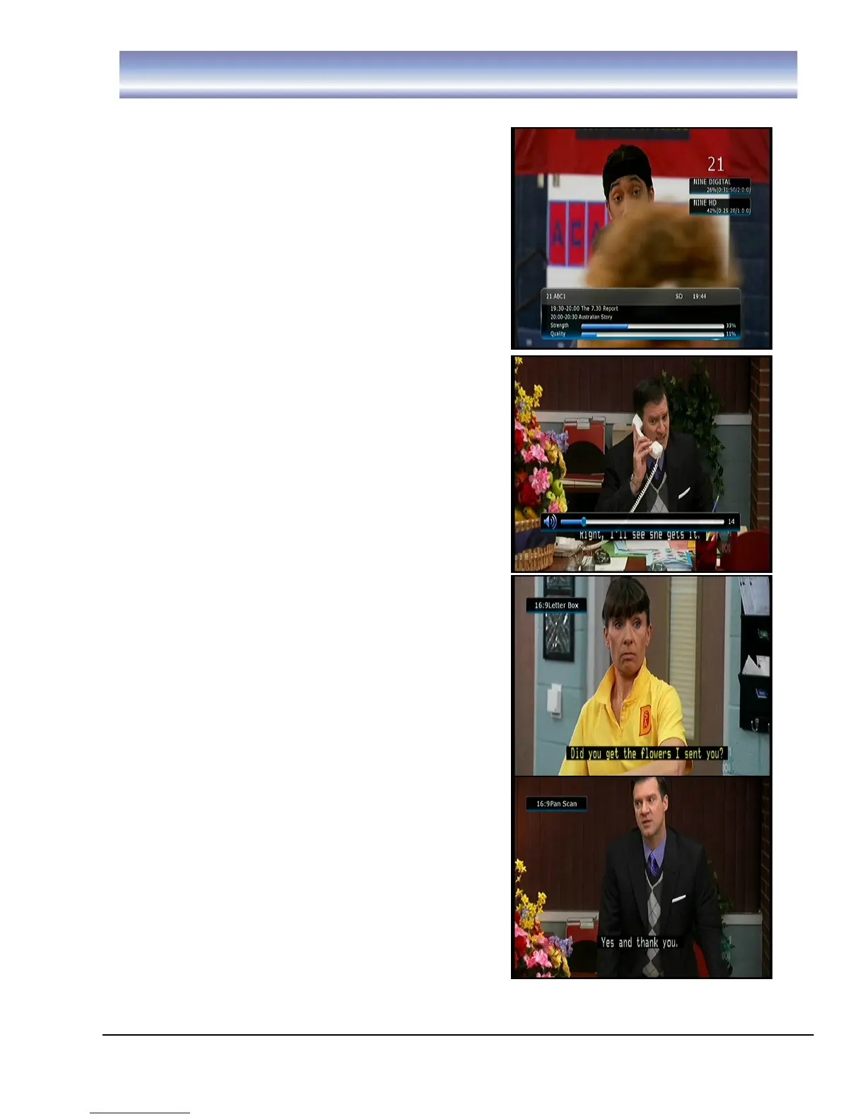 Pan Scan, 4:3 Full, 4:3 Letter Box and 4:3 Pan