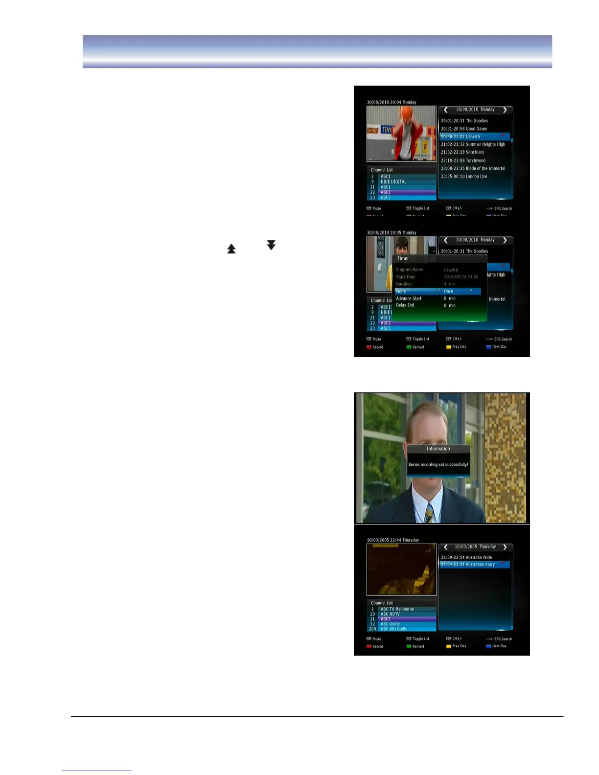 Select the set series timer using the [▲][▼] buttons. Press the GREEN button to