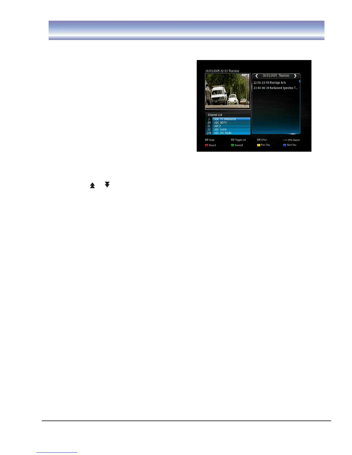 4. Press [YELLOW]/[BLUE] button to view the electronic program data list for