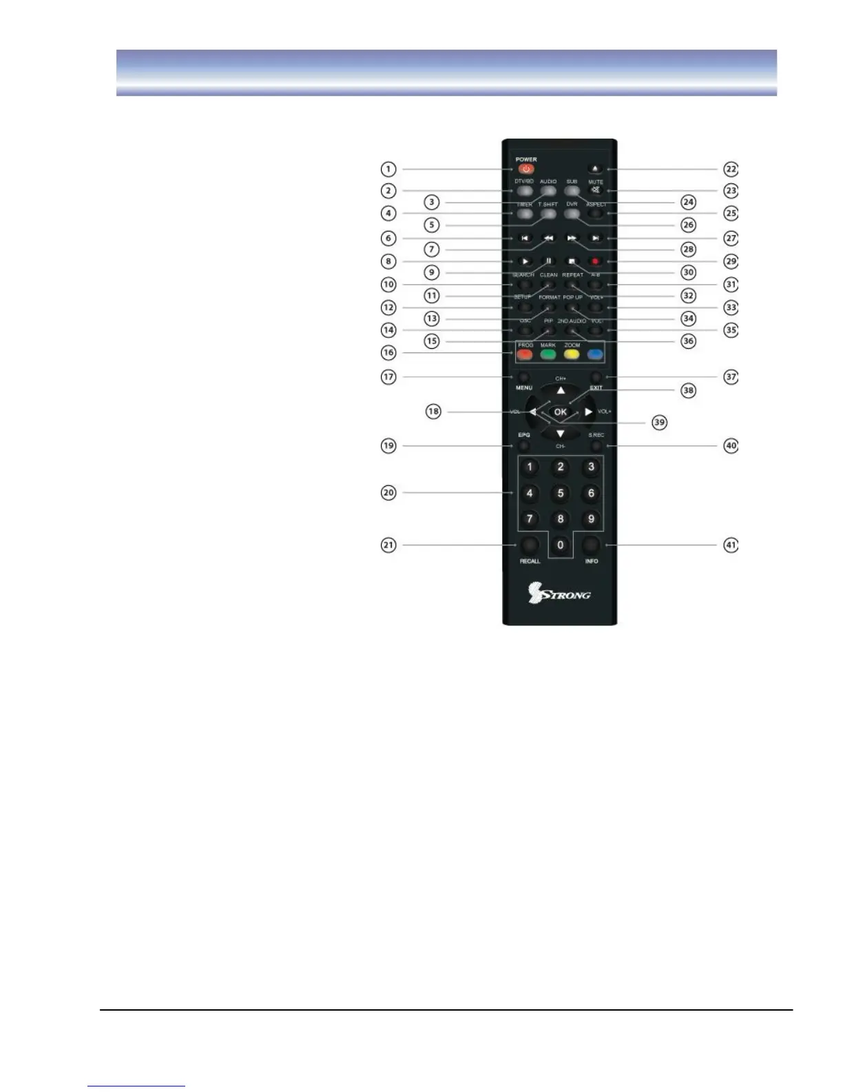 17. MENU:To enter into the main menu, Press again to return to previous menu.