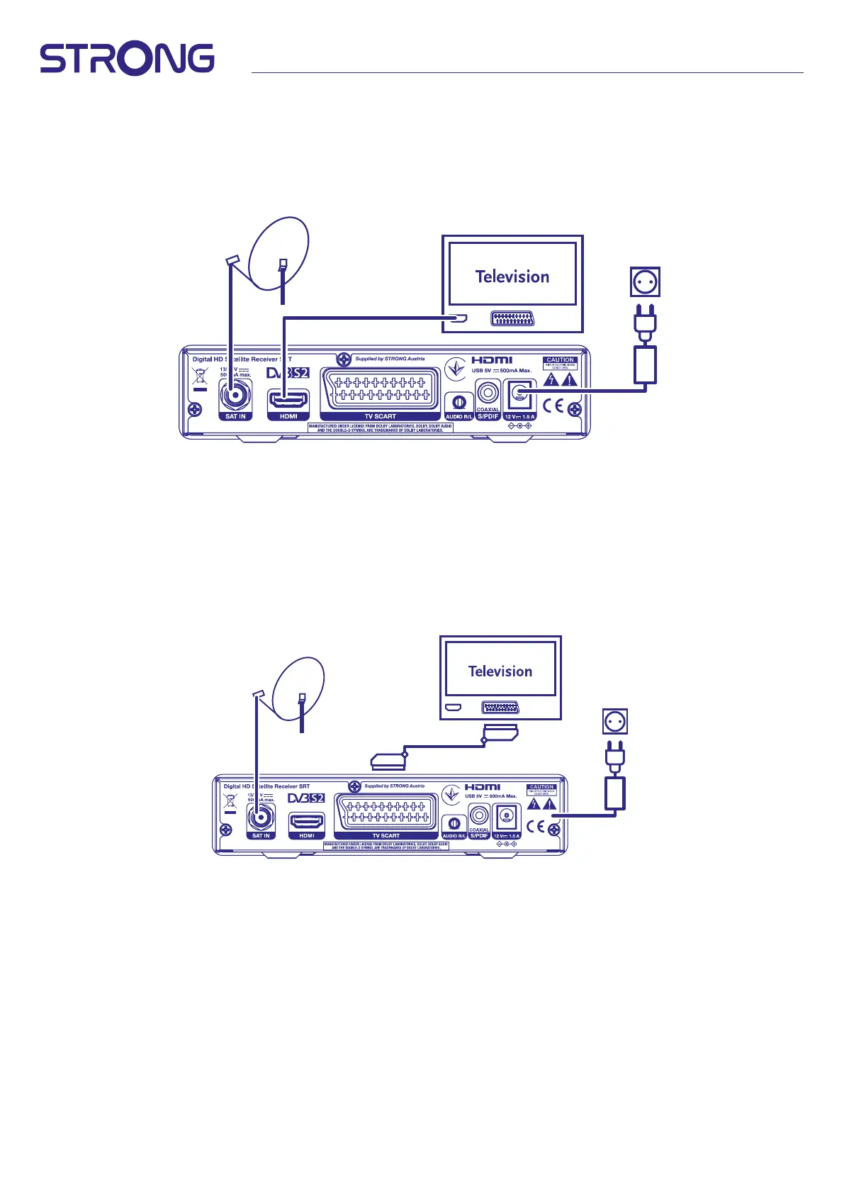 b. Connect one end of a good quality Scart cable to the TV SCART connector on your receiver and the other