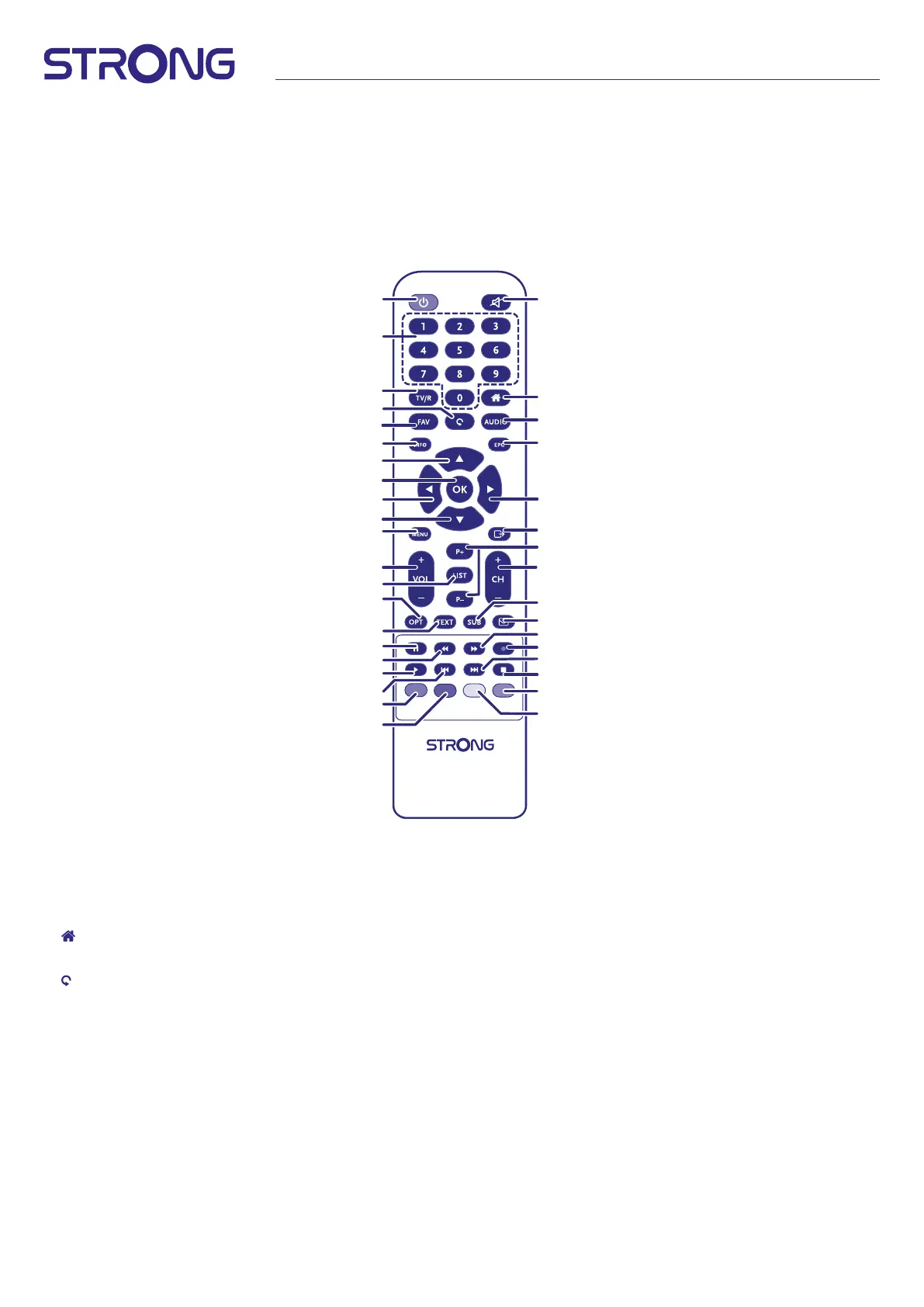 12. OK Viewing mode: Displays the channel list. Menu: activation of the highlighted item