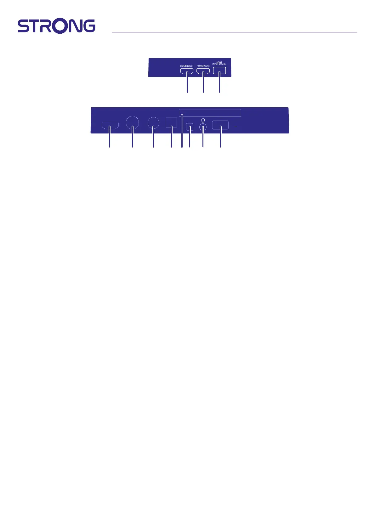 5. ANT 1 Connect a coaxial cable to receive signal from the DVB-T/T2 antenna or DVB-C cable.