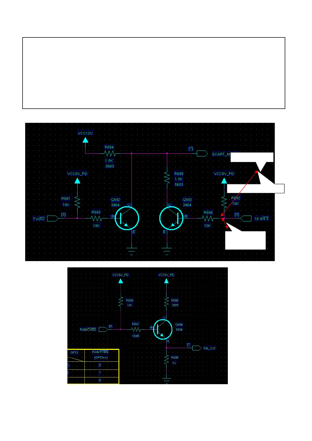 If a strange ratio in 4:3 and 16:9 is detected, the voltage of TV scart pin number 8