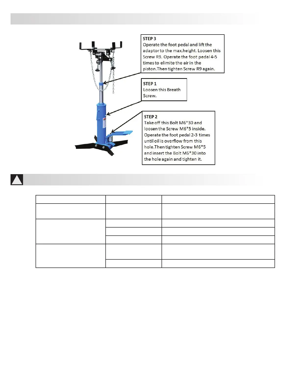1. Release the jack. 1.Operate the foot pedal and release