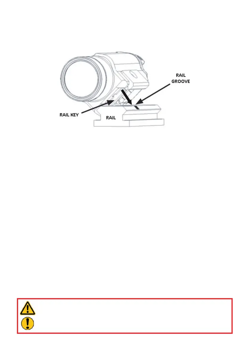 edge of the rail, so that the rail key matches the rail groove (see illustration below). Now